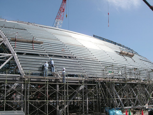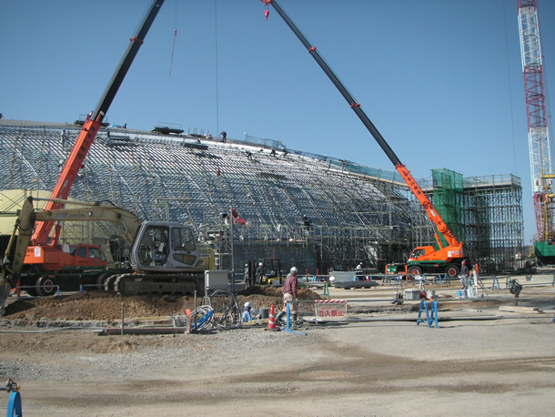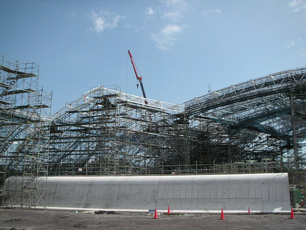 | 概要 | 兵庫県三木市にある、国際マッチも開催可能なセンターコートをはじめ、全9コートを備えた日本最大級の屋内テニス場、ビーンズドーム。 屋内テニス場即製立体トラスを使用したドームとしては日本最大である、この施設の建設足場をマルイチ株式会社が施工させていただきました。 |