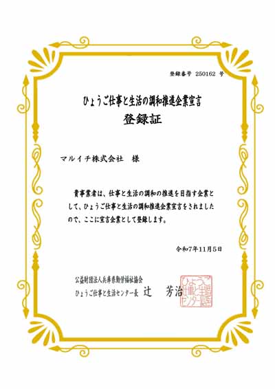 社員一人ひとりの心身的な健康を維持し、企業全体の生産性も高めます。マルイチは、仕事と生活の調和の推進を目指す企業として令和7年11月5日に登録されました。